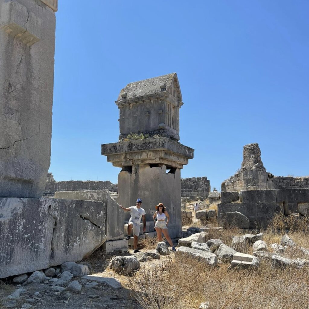 Further along the same road, the remains of ‘The Lion Tomb’ are to be seen. The lion symbolized death as the guardian of the grave among the peoples of Asia Minor and Greece, while Persian and Assyrian lions represented the power of the ruling power. During the second half of the 6th century BC when this tomb was built, Lycia was under the rule of the Achaemenid Persians. Therefore, the lion figure may have been chosen to demonstrate their allegiance to the Persian kingdom.